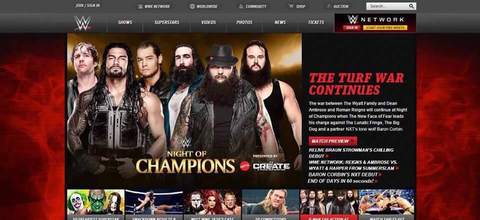 The image also showed up on WWE.COM before it was replaced by the original image with the description, “The war between The Wyatt Family and Dean Ambrose and Roman Reigns will continue at Night of Champions when The New Face of Fear leads his charge against The Lunatic Fringe, The Big Dog, and a partner NXT’s lone wolf Baron Corbin.”